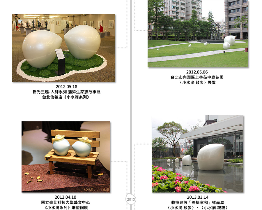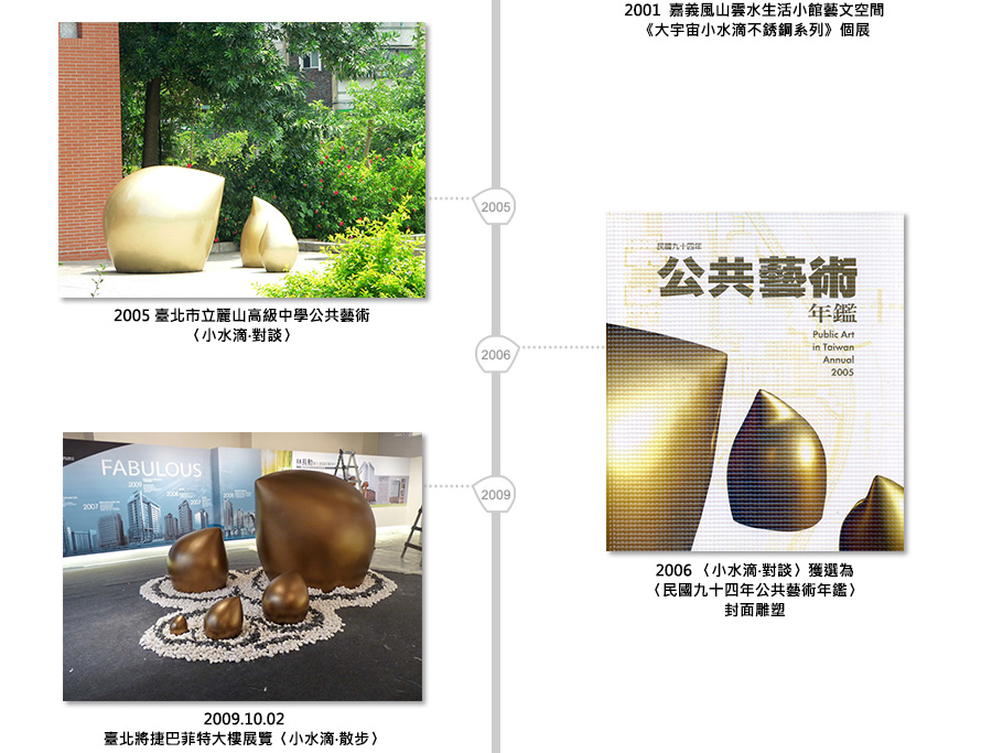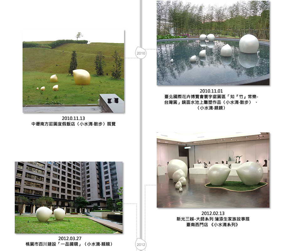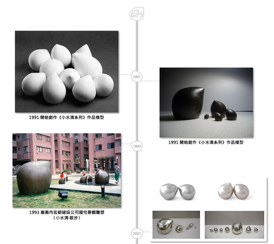 『小水滴』使用西洋雕塑技法,將宇宙間最複雜的形體與情感,去蕪存菁回歸單純的手法創作,象徵"愛"在人生旅程裡,紀念感情的【純心∞永恆】。