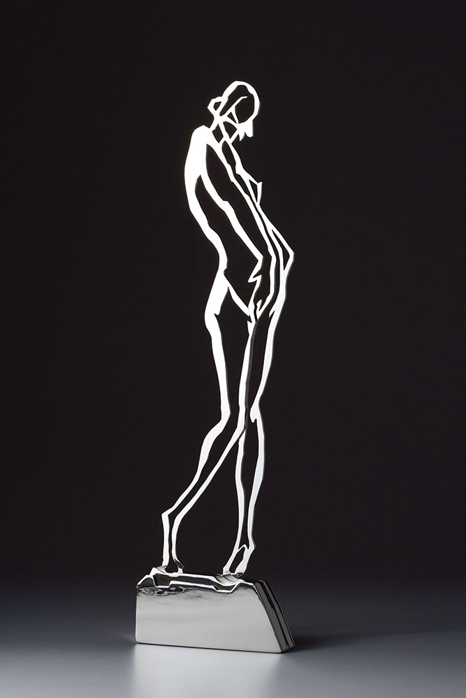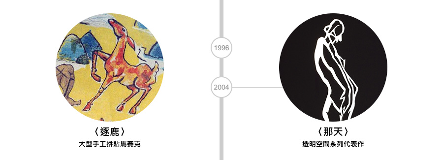 探討結合2D與3D的藝術造形,使用2D的線條對空間界定的特質及3D實體材質的體積特性產生線條本身的存在與不存在,遊走在似繪畫性的表現形式,卻有3D實體的空間變化,在虛實中產生空間的趣味。而創作採用的方法是把不銹鋼平板,透過移位、透明、透視、重疊、共用……等的方式來處理。