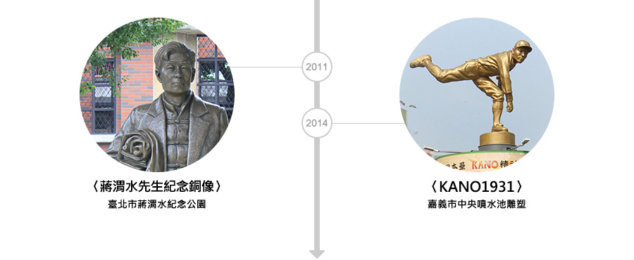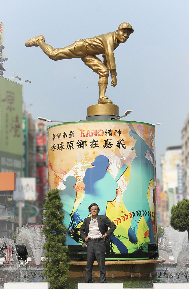 這件作品是一個棒球投手的投球姿勢,取材自1931年,當年嘉農棒球隊王牌投手吳明捷的一張泛黃照片。