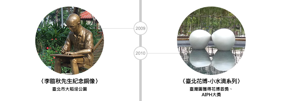 『小水滴』使用西洋雕塑技法,將宇宙間最複雜的形體與情感,去蕪存菁回歸單純的手法創作,象徵"愛"在人生旅程裡,紀念感情的【純心∞永恆】。