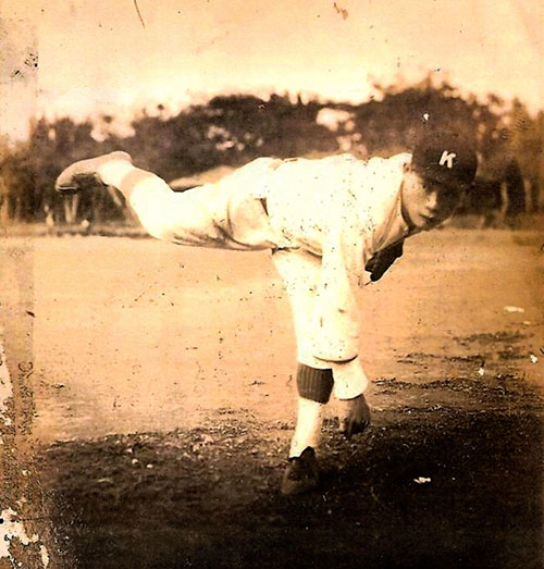 這件作品是一個棒球投手的投球姿勢,取材自1931年,當年嘉農棒球隊王牌投手吳明捷的一張泛黃照片。