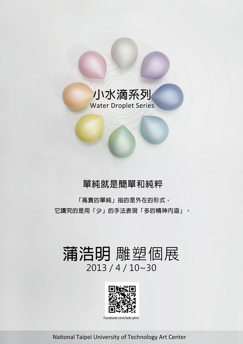 國立台北科技大學邀請駐校藝術家蒲浩明老師於藝文中心舉辦《小水滴系列》雕塑個展,這是暨2011年8月舉辦蒲浩明「透明空間 - 另一個造形的思考方向」 雕塑個展之後,再次於國立台北科技大學舉辦展覽。