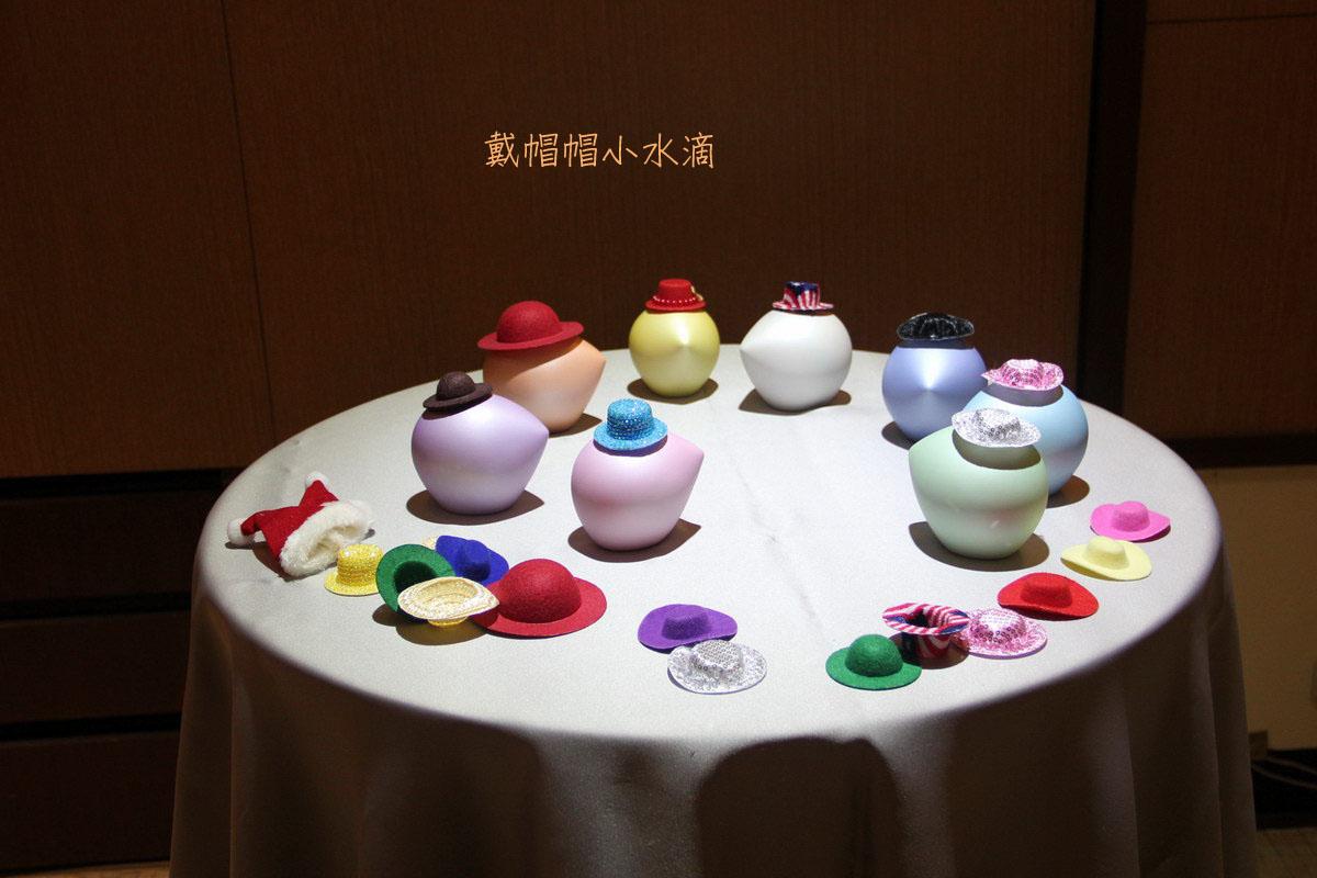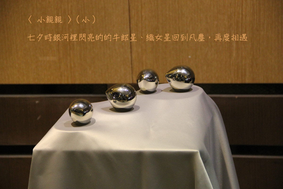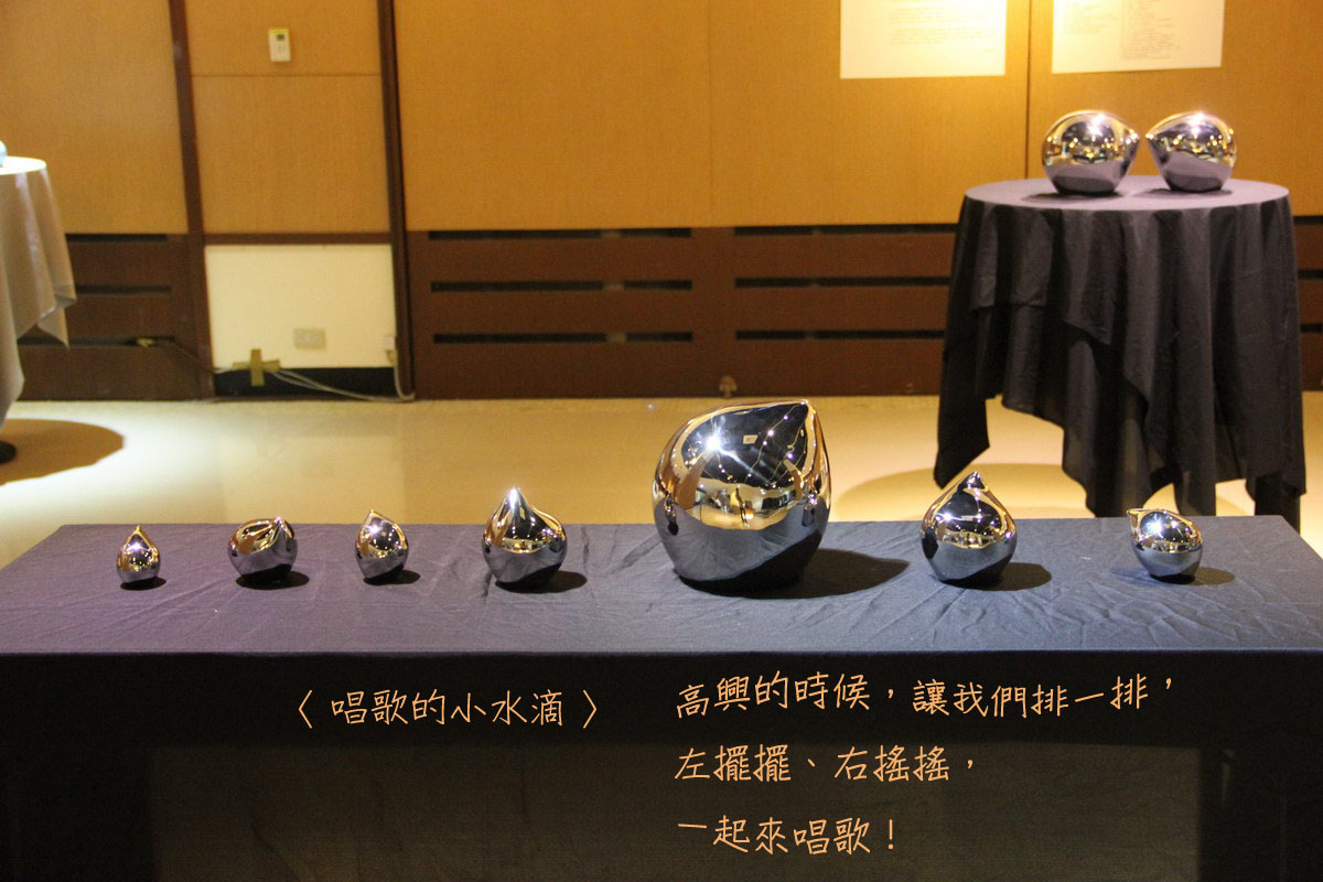 這次除了展出《小水滴系列》既有的的不鏽鋼材質系列以外,也新發表彩色文創版的小水滴,呈現多元的組合風格。