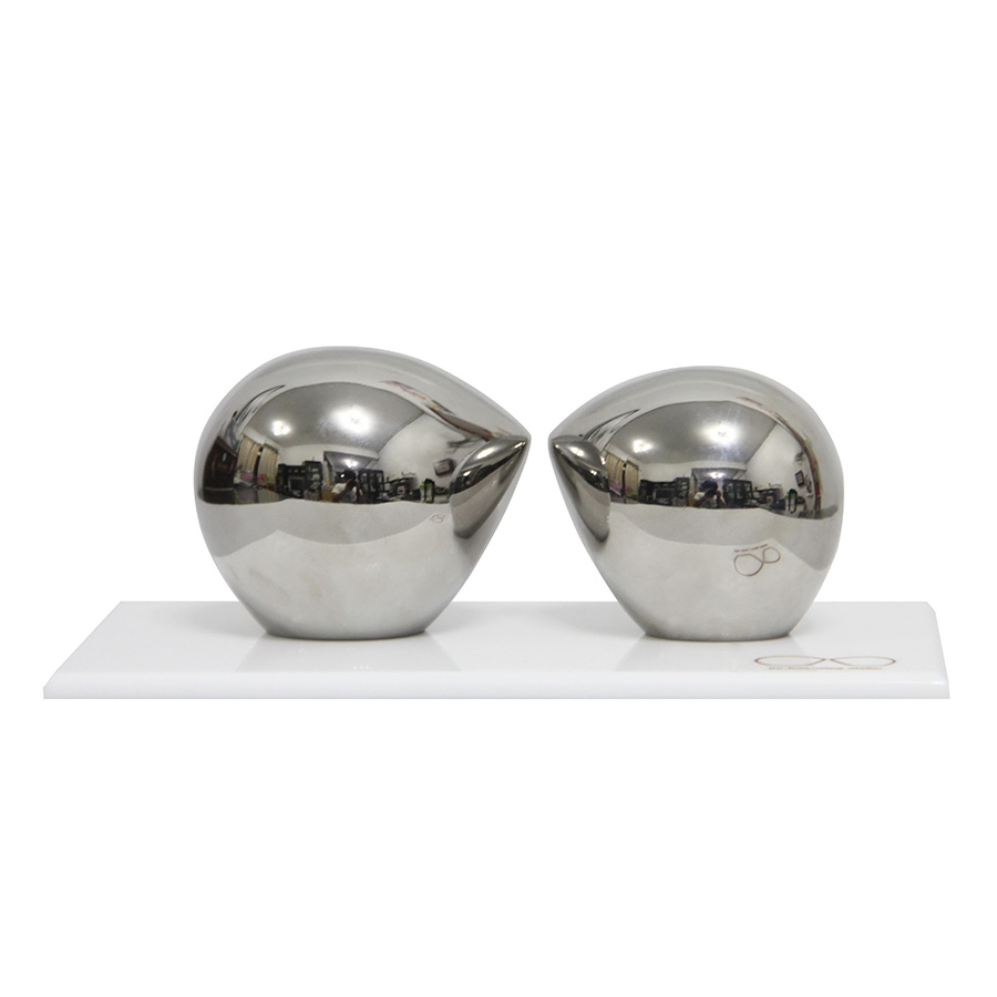 情人紀念禮品/結婚紀念禮品/金婚紀念禮品/六禮/十二禮/結婚信物 台灣雕塑家蒲浩明所創作,一對〈小水滴‧親親〉象徵情人嘟著嘴,甜甜蜜蜜的Kiss, 也可以自由擺設當作倆人之間互動的溫度計。 例如排成一起去散步、講悄悄話、相依在一起,或是背對背不理你了! 一對〈小水滴‧親親〉豐富了生活的情境對話。 |